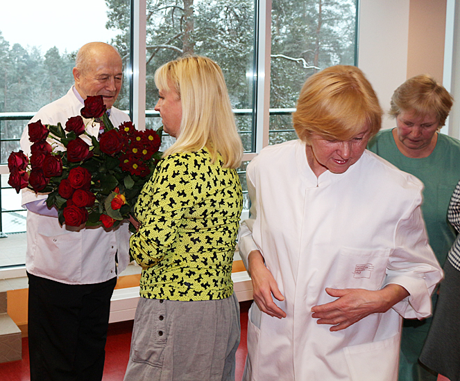 Jubilāru šodien, sākoties darba dienai, sveica kolēģi. “Tu tik daudziem no mums esi bijis skolotājs,” atzina Ogres slimnīcas vadītājs Dainis Širovs, raksturojot Haraldu Varenu kā vienu no slimnīcas kolektīva pamatakmeņiem un kā viņa spēcīgākās īpašības atzīmējot pacietību, gudrību un izturību, un vēlot arī turpmāk saglabāt veselību, skaidru prātu un vēlmi strādāt.