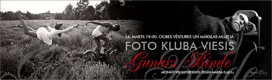 9.maijā plkst. 19.00 Ogres Vēstures un mākslas muzejā notiks jau trešā foto kluba „Ogre” rīkotā viesu diena. Šoreiz uz sarunu par fotomākslu aicina pazīstamais fotogrāfs Gunārs Binde.