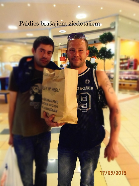Brīvprātīgo grupas sastāvā jauni dalībnieki-Laura, Anna, Līga. Fotografējām tikai akcijas pirmajā dienā-piektdienā.Pēc akcijas apkopojām piedzīvoto. Jaunie dalībnieki secināja, ka vislielākais atbalsts nāk no tiem, kam pašiem iet grūtāk. Brīvprātīgā Guna nespēja slēpt aizkustinājuma asaras, redzot, kā ratiņkrēslā sēdošais cenšas sagādāt priekš citiem palīdzību, piepildot un nododot pārtikas paku. Šāds paraugs arī mums, kas pēc tam šīs pakas dalīs tālāk, liek sevišķi apdomāt, kuru rokās nodot tālāk šo nesavtīgo palīdzību.