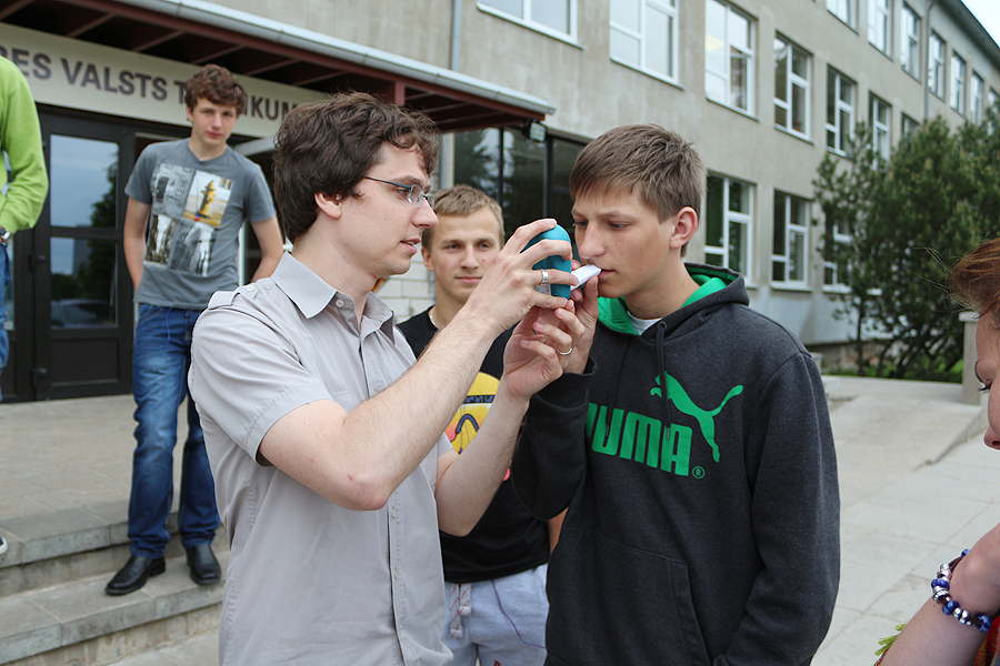 Šodien Ogres novada pašvaldības aģentūras "Dziednīca" veselības veicināšanas konsultanti mērīja tvana gāzes koncertrāciju Ogres Valsts ģimnāzijas un Ogres Valsts tehnikuma audzēkņu izelpā.