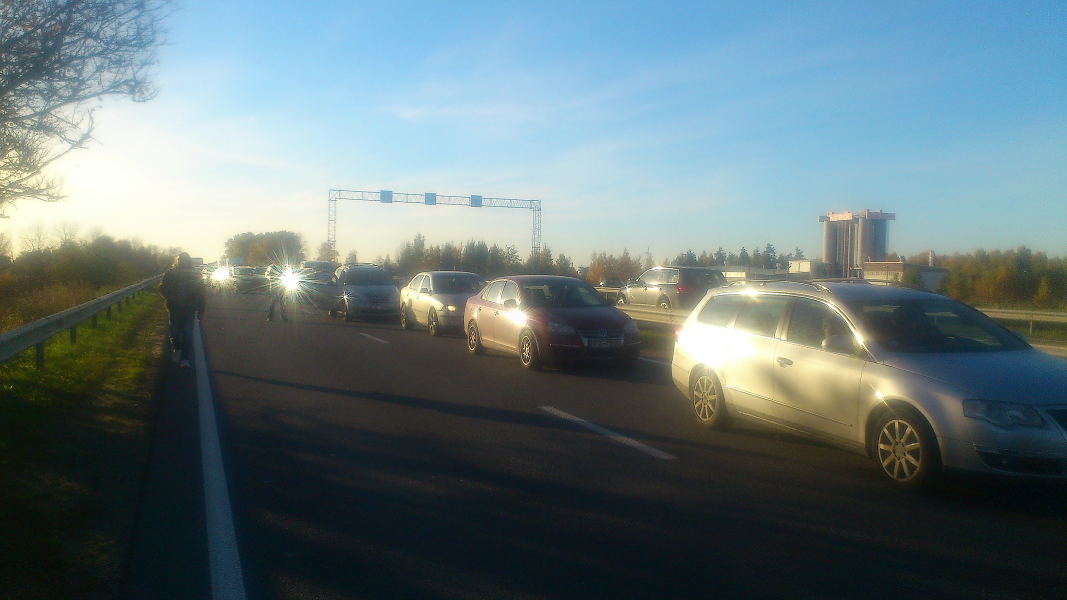 Automašīnas šoferis, kurš tobrīd devies mājup uz Ukrainu, ar noslāpušo spēkratu vēl paspējis nobraukt uz šosejas malas, taču ar to viņa nedienas nebeidzās - auto uz vairākām stundām iestiga ceļmalas dubļos. Lai smago auto atkal nogādātu uz šosejas braucamās daļas, ap pulksten 16:30 notikuma vietā ieradās smagā tehnika, bet policijas darbinieki uz pusstundu pilnībā apturēja satiksmi virzienā uz Ogri. Satiksme atjaunota tikai ap pulksten 17, kad uz šosejas jau bija izveidojusies vairāku simtu auto garš sastrēgums, turklāt vairumam tajā gaidošo nebija nojausmas par satiksmes sarežģījumu iemeslu.
