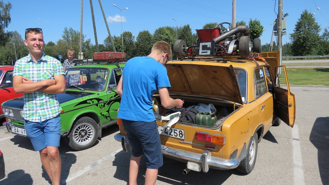 Ogrē šodien piestāja 25 visdažādākie  VAZ auto, no kuriem vislielāko interesi piesaistīja no Liepājas atbraukušais  dzeltenais žigulītis ar tikpat košu pusžigulīša piekabi.