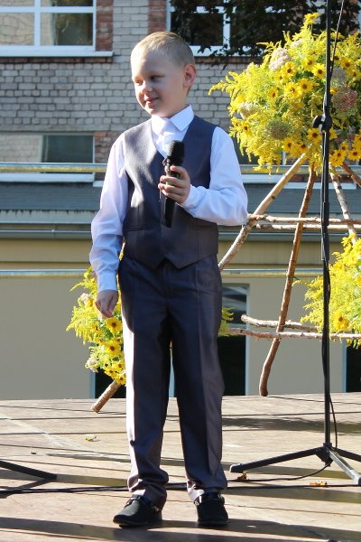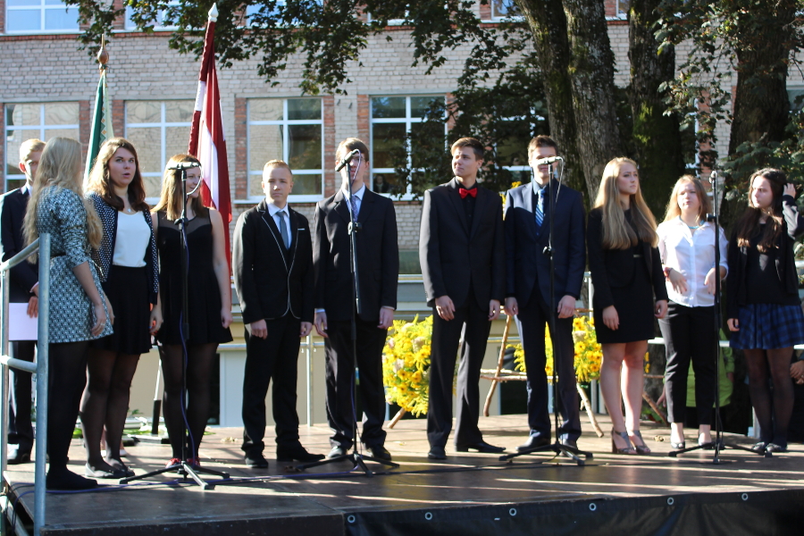 Jau tradicionāli skolas pagalmā pirmklasniekus ieveda vecāko pamatskolas un vidusskolas klašu audzēkņi. 1.a klasi audzinās skolotāja Iveta Erneste, 1.b klasi - Lidija Leidume, 1.c - Ingrīda Broka, 1.d - Spodra Siliņa, bet 1.e - Sarmīte Tipaine.