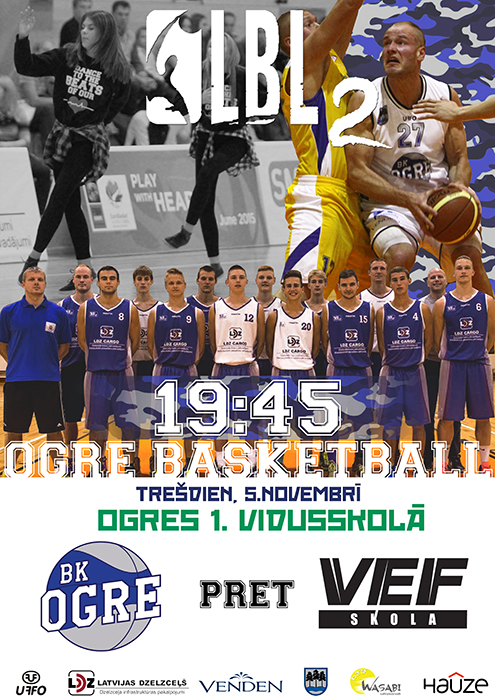 Rīt, 5. novembrī plkst. 19:45, BK Ogre pēc divām izbraukuma spēlēm turpinās cīņu LBL2 turnīrā ar mājas spēli pret VEF Skola komandu. Līdz šim BK Ogre piecās aizvadītajās spēlēs ir izcīnījuši piecas uzvaras, kas B grupā nav izdeviens nevienai citai komandai. Ar tik izcilu bilanci var lepoties vien A grupas līderi ViA/Valmiera Glass.