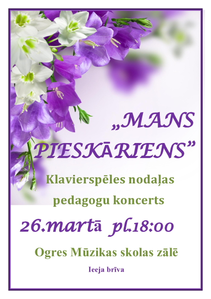 Par spīti neiepriecinošajam ziemas pieskārienam martā, Ogres Mūzikas skola aicina uz pavasarīga romantisma apvītu koncertu „Mans pieskāriens” – ceturtdien, 26.martā plkst. 18:00 mūzikas skolas Lielajā zālē.