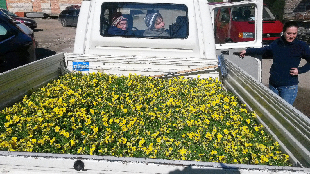 Āra darbiem nelabvēlīgos laika apstākļus, kad stipri līst, dārznieki  izmanto lietderīgi, turpinot vasaras puķu  dēstu audzēšanu  esošajā siltumnīcā.  No atraitnītēm atbrīvotajā vietā šodien tiek izpodoti  tūkstots  leduspuķīšu jaunstādu. Pavisam sezonas laikā tiek izaudzēti vairāk kā 4600 stādu , kas tiek izstādīti pilsētas teritorijās  un daudzdzīvokļu ēku pagalmos.
