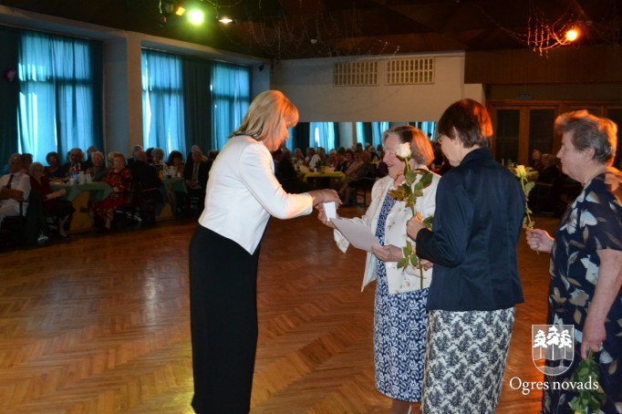 Pensionāru biedrības 40 gadu jubilejā un Starptautiskajā Veco ļaužu dienā sirsnīgi sveica Ogres novada domes priekšsēdētājs Artūrs Mangulis, priekšsēdētāja vietnieces Ineta Tamane un Ilga Vecziediņa, pateicās par ieguldījumu un novēlēja būt tikpat aktīviem, kā arī entuziasmu un dzīvotprieku, sveicieniem pievienojās Ogres novada domes deputāts Edvīns Bartkevičs un Latvijas Pensionāru federācijas vadītājs Andris Siliņš.
