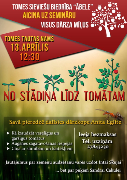 13.aprīlī plkst. 12.30 Tomes tautas namā notiks dārzkopības seminārs.