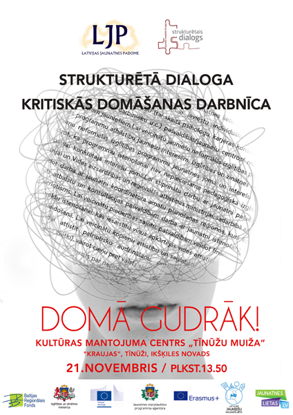 2016.gada 21.novembrī plkst. 13:50 kultūras mantojuma centrā „Tīnūžu muiža”, Tīnūžos, Ikšķiles novadā notiks strukturētā Dialoga kritiskās domāšanas darbnīca „Domā gudrāk!”