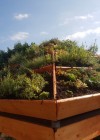 Kopumā iestādīti 250-260 stādi no 12 šķirnēm. To vidū, arī meža zemene, laimiņi, auzene, lavanda, mārsili un citi, veidojot skaistu kopainu. Vēl gan projekta augļi redzami tikai daļēji - daudz smukāks skats pavēršoties pavasarī, kad jumtiņš sazaļos un daudzās krāsās uzplauks uz tā sastādītie ziedi.