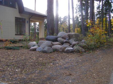 Pie citas mājas, nedaudz tālāk, manāms akmeņu krāvums. Savukārt kādas jaunbūves iemītnieki ceļa malā pie žoga izbēruši ogles.