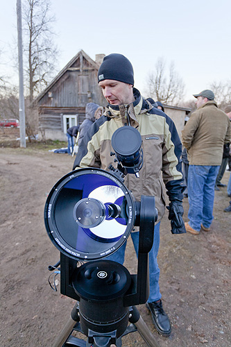 Lektors Aleksandrs Šipovs runāja par astrofotografēšanu Rīgas apstākļos, bet Aivis Meijers klātesošajiem demonstrēja saistošus eksperimentus.