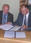 Ogres novada domes un Latvijas Futbola federācijas pārstāvji šorīt parakstīja dāvinājuma līgumu, kas paredz stadiona mākslīgā seguma piegādi 100 tūkstošu latu vērtībā. Segumu uzstādīs Ogres ģimnāzijas un Ogres pamatskolas stadionā.
