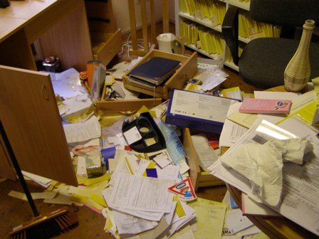 Ap pulksten 9, ierodoties darbā, reģistratūras darbinieki sajutās kā kara laukā - uz grīdas mētājās papīra kaudzes, logs bija atlauzts un atstāts vaļā, turpat uz radioatoriem pamests lauznis. Puķu podi bija izmesti uz ielas. Laupītājus no tālākām darbībām atturēja metāla durvis, kas šķīra reģistratūru no koridora.