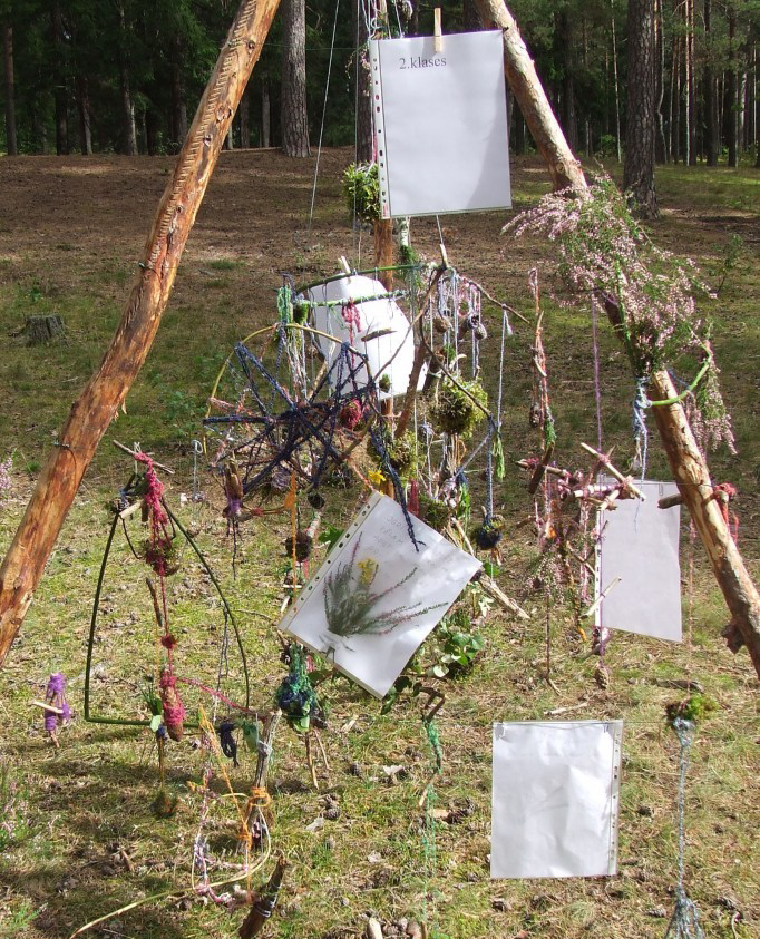 Tālāk bērni devās uz „dabas klasi” – vietu, kur pamazām tiek izveidota atpūtas vieta fiziskām aktivitātēm bērniem. Šeit floristes Lilitas Slavenieces pavadībā no dabas materiāliem un diega bērni veidoja dažādus objektus - apsveikumu Ogres pilsētai. Bērni no klūgām un diegiem izveidojuši pat Ogres ģerboni un uzrakstu „OGRE”, dažādas kompozīcijas, kā arī uz papīra lapām katra klase atstāja apsveikuma vārdus pilsētai. „Neko bērni nedrīkstēja plēst, tikai griezt, kā arī savām kompozīcijām izmantot tikai to, kas atrodams uz zemes,” skaidro L. Slaveniece. „Šīs nodarbības attīsta bērnu domāšanu, ļauj strādāt ar rokām, vingrina pirkstus, viņi iepazīst dažādus dabas materiālus.”