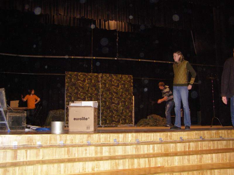 Lai dotos uz gada nozīmīgāko notikumu, aktieri jau pulcējās no paša rīta. Kā viņi atzina, „Šveiks” ir viena no Ogres Tautas teātra izrādēm, kurai ir visvairāk rekvizītu – podesti, krēsli, širmji, pudeles, mākoņi, mucas, tērpi u.tml. To visu aktieri mēģināja sadabūt autobusā. Par laimi, veiksmīgi tas arī izdevās. Lai arī sēdēt dažam labam nācās starp tērpiem un ložmetējiem. Nav nemaz tik viegli būt aktierim!
