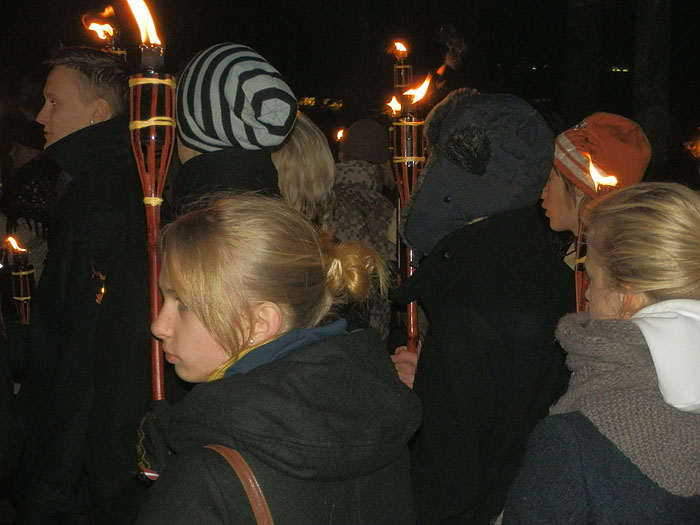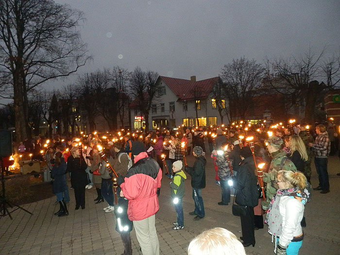 Pēc uzrunām pasākuma dalībnieki devās uz Brāļu kapiem, tur atstājot lāpas, kas vēl kādu laiku sildīs kritušo karavīru sirdis.