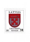 Savukārt Lielvārdes novada ģerbonis redzams uz pastmarkas 3 000 000 eksemplāru tirāžā un ar nominālvērtību 0,38 Ls - ar šādu vērtību pa Latvijas Republikas teritoriju var nosūtīt vienkāršu vēstuli, kuras svars ir no 20 līdz 50 gramiem. |