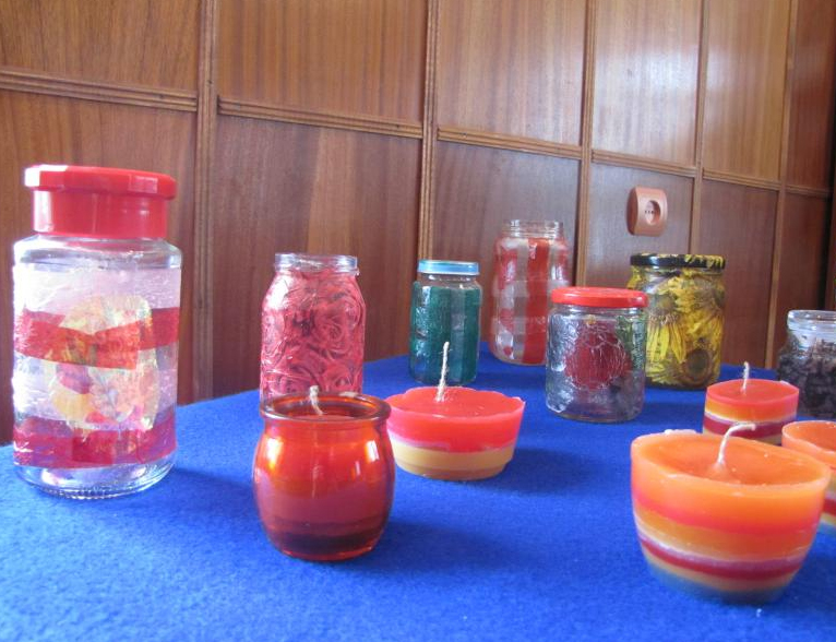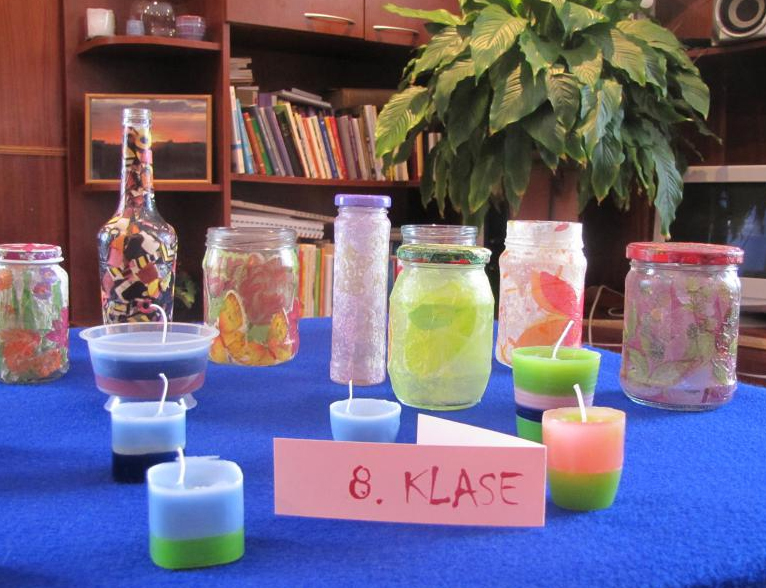 Skolotāju Kristīnes Saules un Evijas Slises virsvadībā bērni ir izgatavojuši brīnišķīgas sveces un īpašā tehnikā apdarinātus stikla traukus.