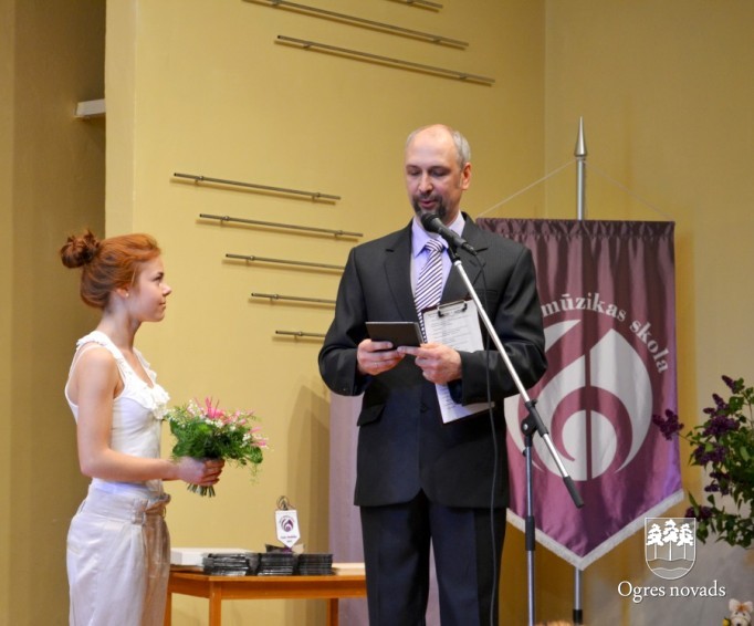 Koncerta noslēgumā visbeidzot tika atklāts, ka šī mācību gada Gada balvas ieguvēja ir flautiste Adelīna Nikitenko, bet titulu Gada skolotājs no Maigoņa Makara pārņem Adelīnas skolotāja Margarita Sarkisjana. Skolotāju un viņas talantīgo audzēkni mīļi sveica arī Ogres novada pašvaldības kultūras darba koordinatore Anita Ausjuka.
