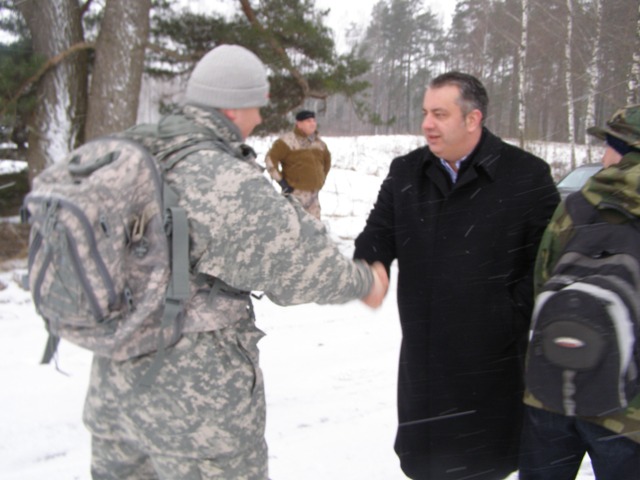 Īpašs brīdis pārgājiena laikā bija tikšanās ar aizsardzības ministru Vinetu Veldri, kurš “Patriotiskās audzināšanas un militārās tuvcīņas skolai” pasniedza goda rakstu “par ieguldījumu Latvijas jauniešu patriotiskajā audzināšanā un veselīga dzīvesveida popularizēšanā”. Pateicībā par ieguldīto darbu V.Veldre skolai uzdāvināja 10 mācību triecienšautenes.