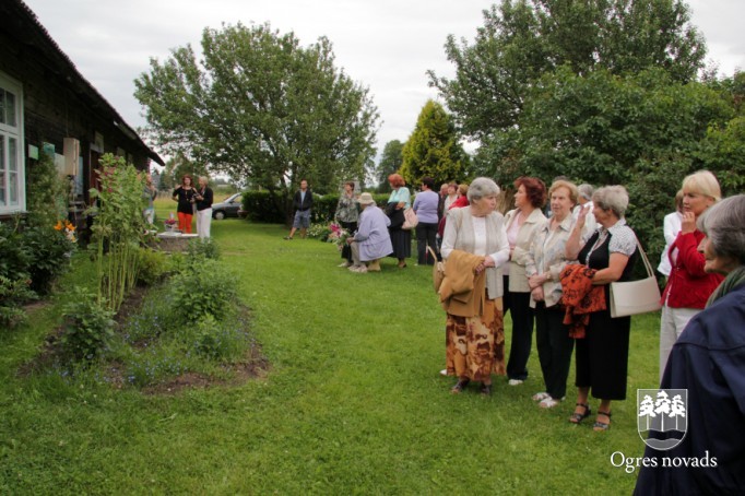 Pie simtgadīgās ēkas guļbaļķu sienas savu gleznu izstādi bija izveidojusi Rēzeknes māksliniece Ilvija Juškeviča, latviešu dūdu skanējumā ļāva ieklausīties Eduards un Audars Klinti.
