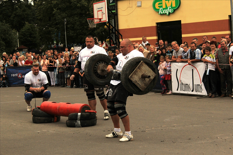 Pasākuma noslēgumā visus klātesošos mēģināja pārsteigt brāļi Ivars un Agris Kazeļņiki. Viņu uzdevums bija pavilkt Scania kravas automašīnu sakabi, kuru kopējais svars bija 80 tonnas. Jāsaka, ka slikto laika apstākļu dēļ ar pirmo piegājienu šo prātam neaptveramo smagumu pavilkt neizdevās, taču mēģinājums izdevās, un nu Latvijā ir jauns Eiropas rekords, ko uzstādījuši brāļi Kazeļņiki. 80 tonnas brāļi novilka 280 centimetrus.