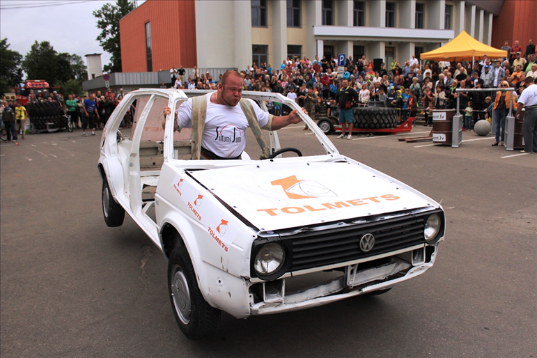 Sacensības sākās ar 900 kg smagas ķerras stumšanu un 200 kg smaguma pārvietošanu. Šis vingrinājums vislabāk padevās mūsu spēkavīriem. Vilmantam Bliujus, Donaldam Andriulis un Sauliusam Brusokam, kas pārstāvēja Lietuvu, otrā vieta ar laiku 0:49:87, bet Markusam Mannikam, Meelim Peil un somam Juha-Matti Jarvi trešā vieta ar laiku 0:52:49.