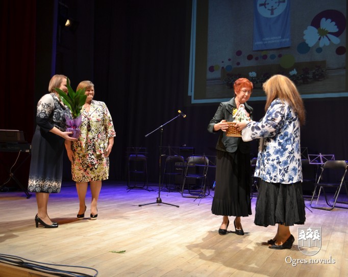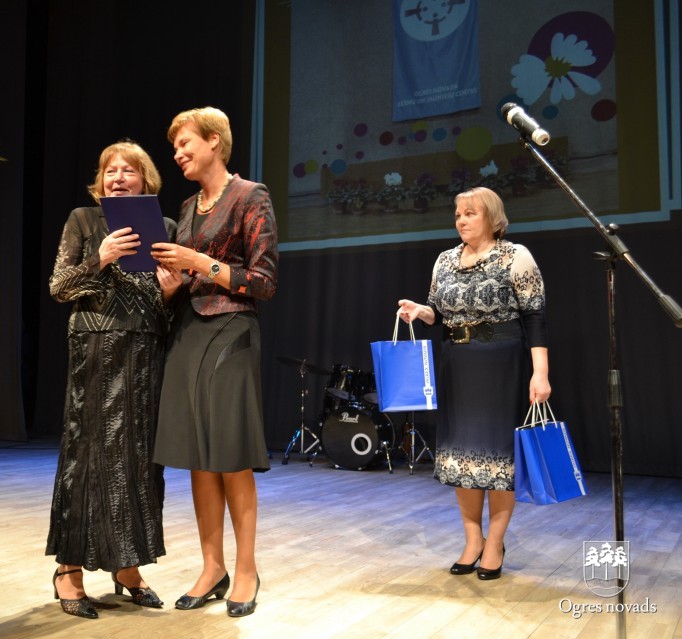 V.Pūķe Ogres novada pašvaldības Pateicības rakstu par ilggadēju, profesionālu darbu interešu izglītībā un ieguldījumu jaunatnes izglītošanā pasniedza Romualdai Bataragai. Par radošu, profesionālu darbību un mūža ieguldījumu darbā ar pūtēju orķestri „Ciemupe” Pateicību saņēma Gunārs Freidenfelds. Pateicību saņēma arī Žanna Kalve par daudzpusīgu ieguldījumu jaunatnes audzināšanā un izglītošanā, viņu ideju atbalstīšanā un realizēšanā. V.Pūķe Pateicību pasniedza arī Lindai Ivanovai par radošu, aktīvu un profesionālu darbu ar jaunatni interešu izglītībā. Aivars Lūsis Pateicību saņēma par radošu un profesionālu darbību un mūža ieguldījumu darbā ar bērniem un jauniešiem. Muzikālā teātra studijas vadītājs Oskars Kļava pašvaldības Pateicību saņēma par radošu, aktīvu un atraktīvu profesionālu darbu ar jaunatni interešu izglītībā. Šie pedagogi saņēma arī īpašo Ogres pilsētas jubilejas piemiņas monētu un foto albumu. Savukārt viss BJC kolektīvs saņēma pašvaldības naudas balvu.